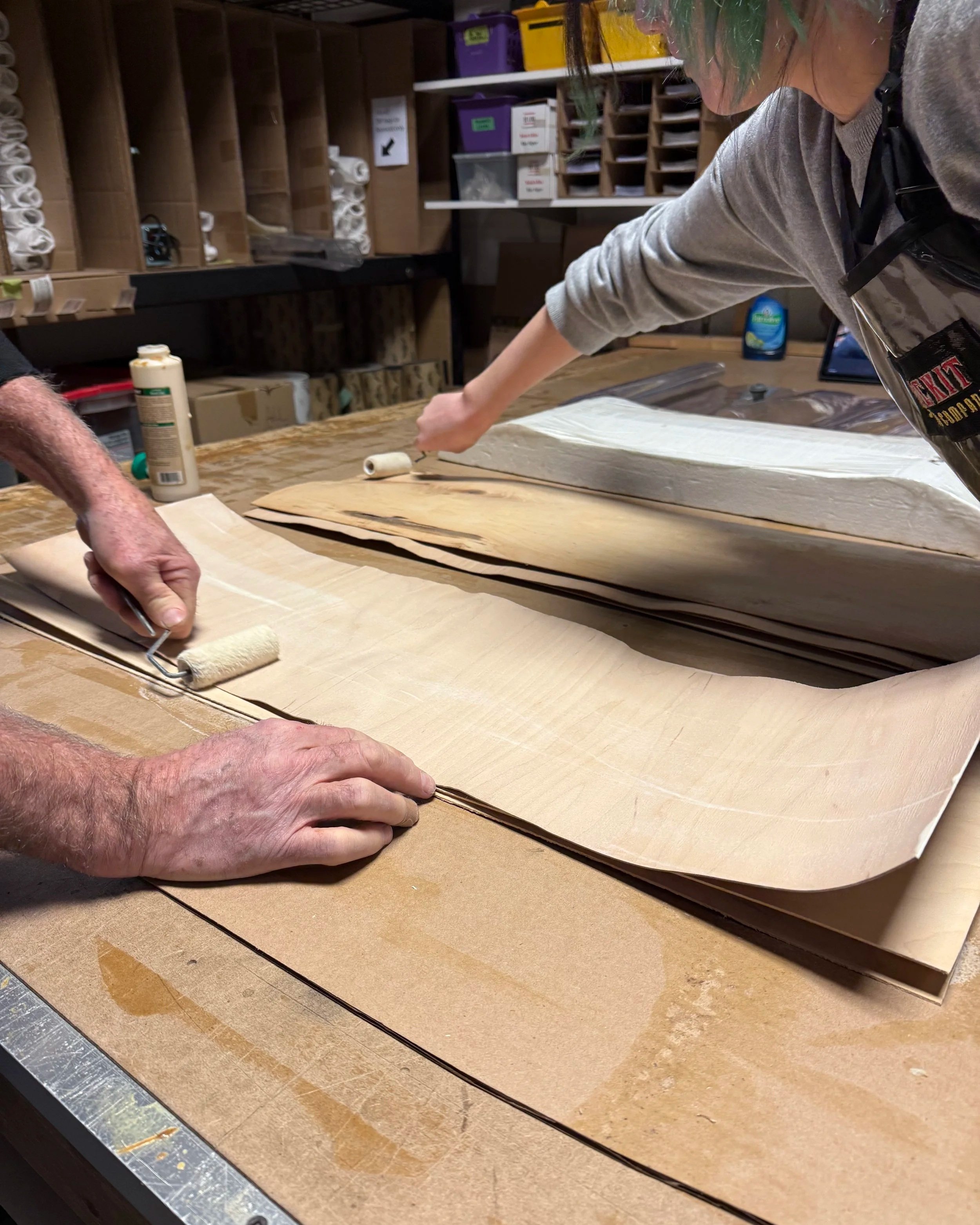 Pay really close attention to the amount of glue you use and make sure you spread the glue EVENLY across ALL areas of the laminate sheets, and the time it takes you to complete the glue up process. You don't want to suffer any delaminations because your glue is not spread well, or you don't have enough.